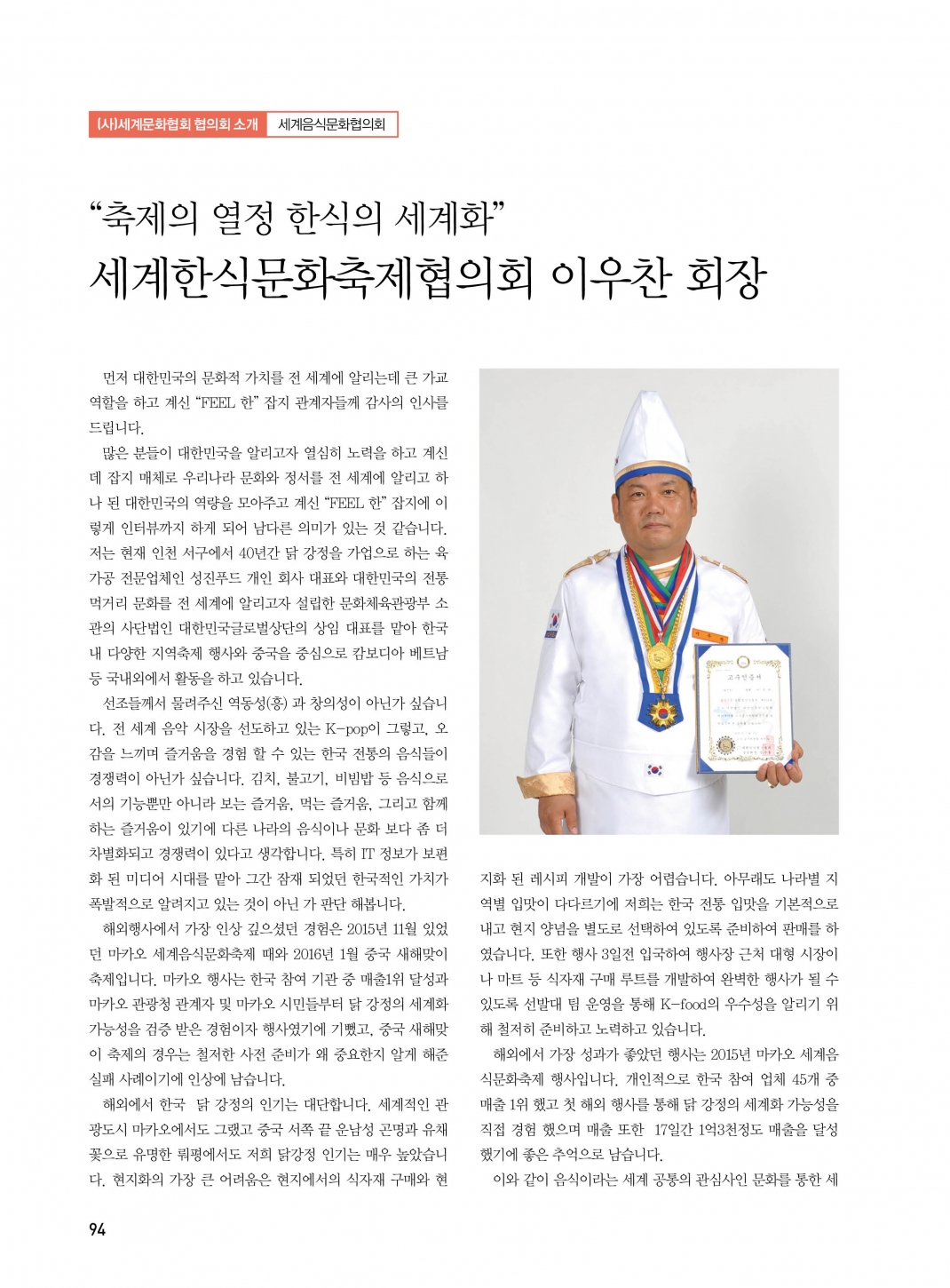 세계음식문화축제협의회 이우찬 회장